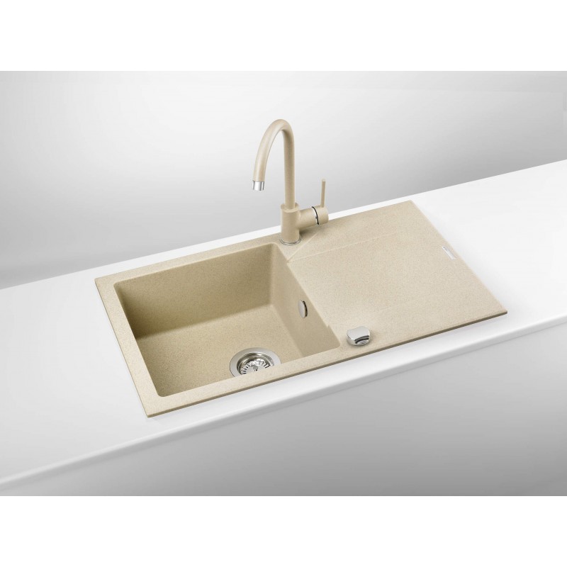 Deante Мийка кухонна Evora, граніт, прямокутник, з крилом, 780х440х193мм, чаша - 1, накладна, пісок