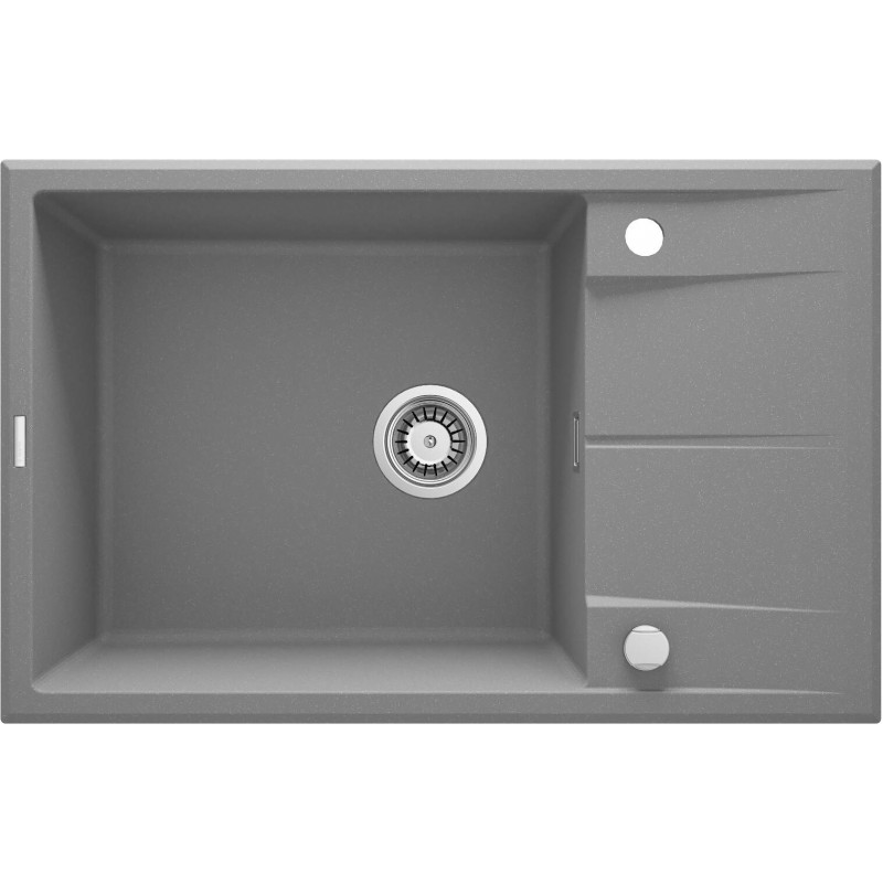 Deante Мийка кухонна Eridan, граніт, прямокутник, з крилом, 780х500х210мм, чаша - 1, накладна, металічний сірий