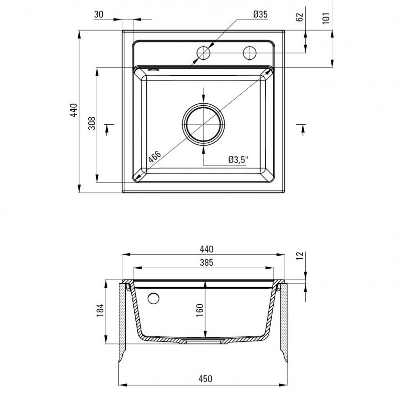 Розміри мийки 440х440х184