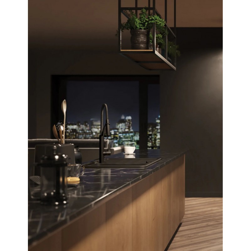 Deante Мийка кухонна Momi, граніт, прямокут., з крилом, 780х500х230мм, чаша - 1, врізна, чорний матовий