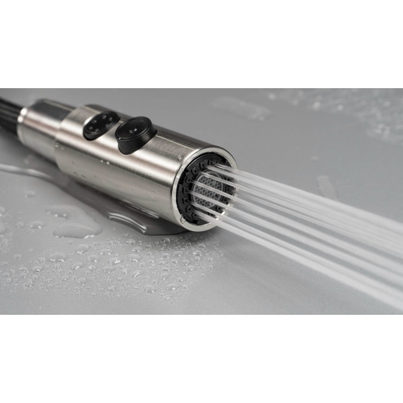 Змішувач із висувним виливом - надзвичайно практичне і зручне рішення на будь-якій кухні. Завдяки йому ви зможете легко підтримувати чистоту в раковині, наповнювати водою високий посуд, обполіскувати овочі та фрукти, а також виконувати безліч дрібних кухонних робіт прямо в раковині. Ви забудете про проблеми з миттям великих аркушів духовки або полиць від холодильника, а отже, і про часте випадкове затоплення стільниці поруч із ним. Тепер ви повністю контролюєте воду на кухні!