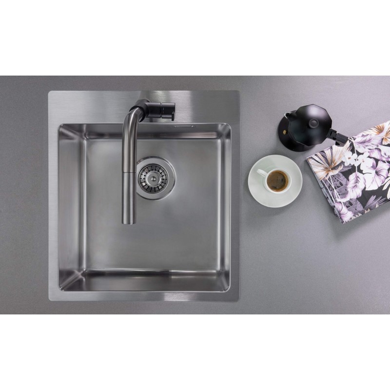 Мийка оснащена геніальним сифоном «Space Saver». Якщо вас дратують труби та коліна, що займають більшу частину простору в шафі, це рішення для вашої кухні. Телескопічна та спеціальна конструкція дозволяє пристосувати форму сифона до ваших потреб. Завдяки цьому можна легко знайти набагато більше місця в шафі, наприклад, для домашньої консервації або сміття. До сифона також можна підключити посудомийну або пральну машину. І найголовніше - ви отримуєте сифон у комплекті!