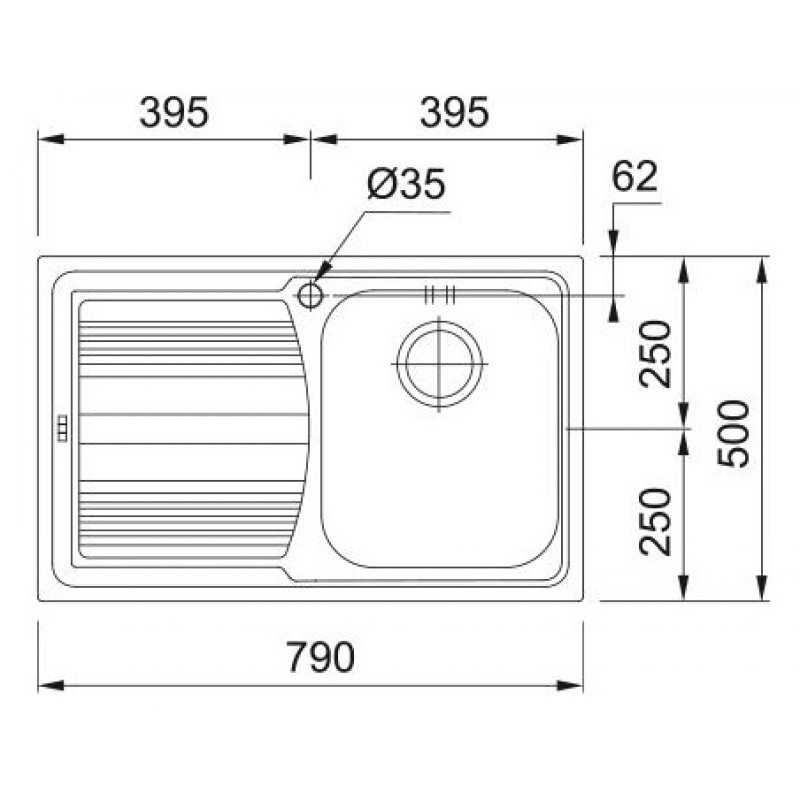 Кухонна мийка Franke Logica Line LLX 611-79/101.0381.810/нержав.сталь Декор/прямокут.,крило зліва/790х500х195/врізна