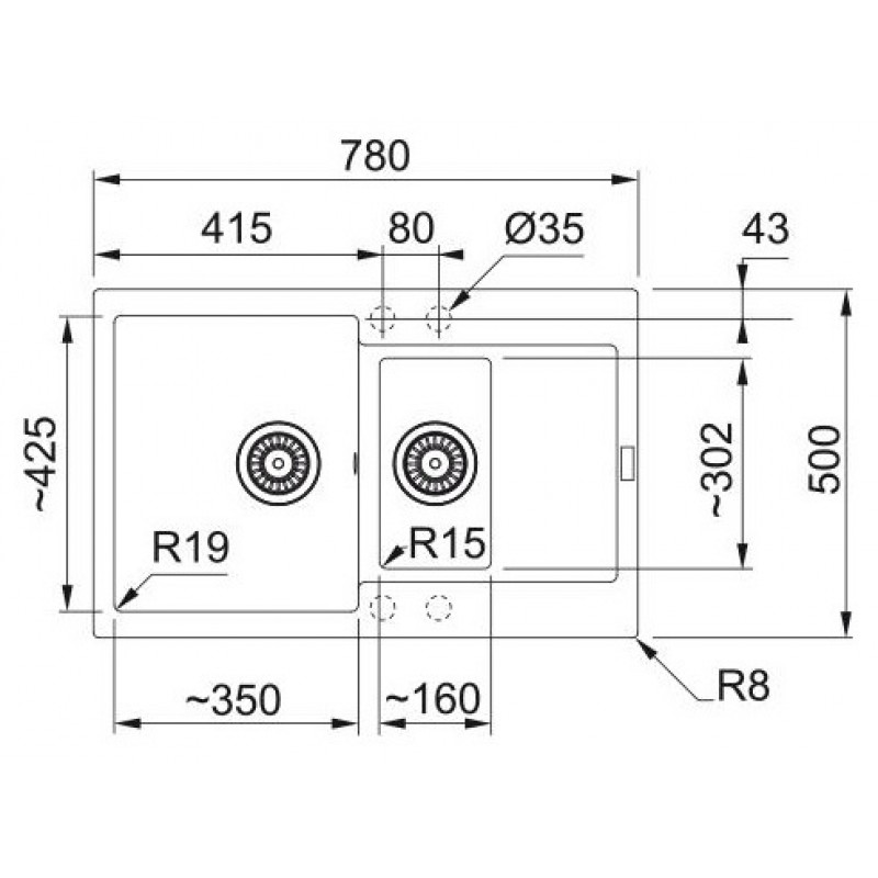 Кухонна мийка Franke Maris, фраграніт, прямокут., з крилом, 780х500х200мм, чаша-2, накладна, сірий камінь
