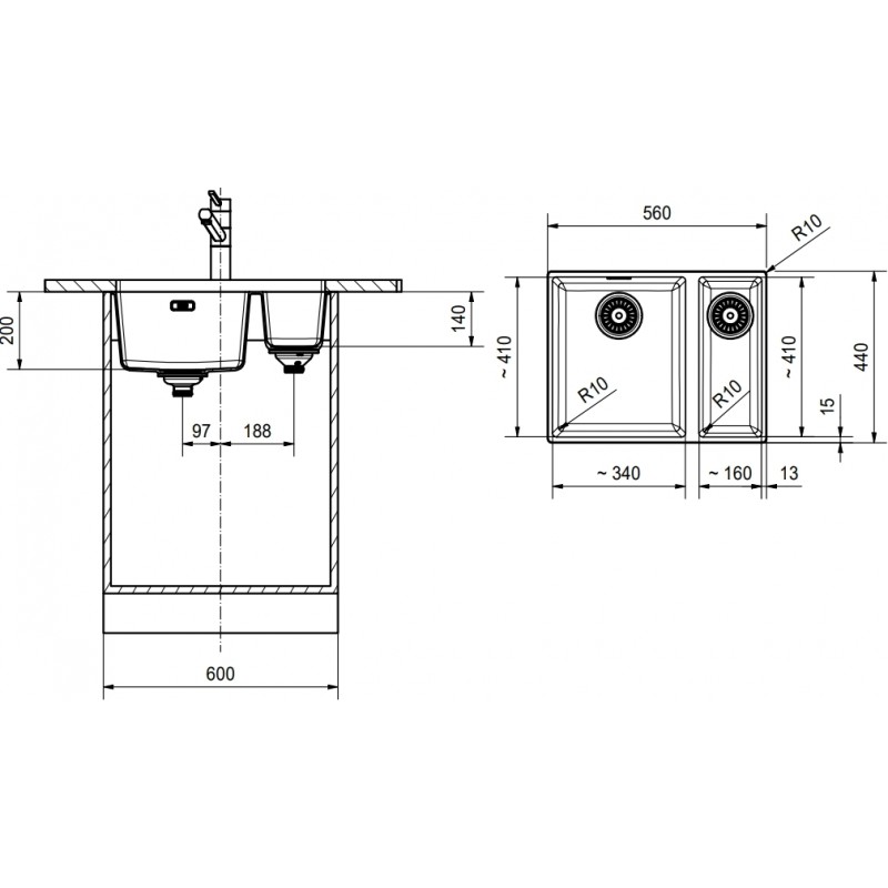 Мийка кухонна Franke Sirius, тектонайт, прямокутник, без крила, 560х435х200мм, чаша - 1,5, під стільницю, SID 160, чорний