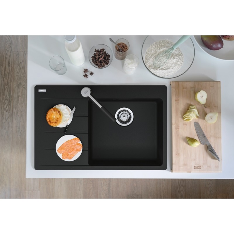 Мийка кухонна Franke Centro, фраграніт, прямокутник, з крилом зліва, 780х500х200мм, чаша - 1, врізна, CNG 611-78 TL , чорний матовий