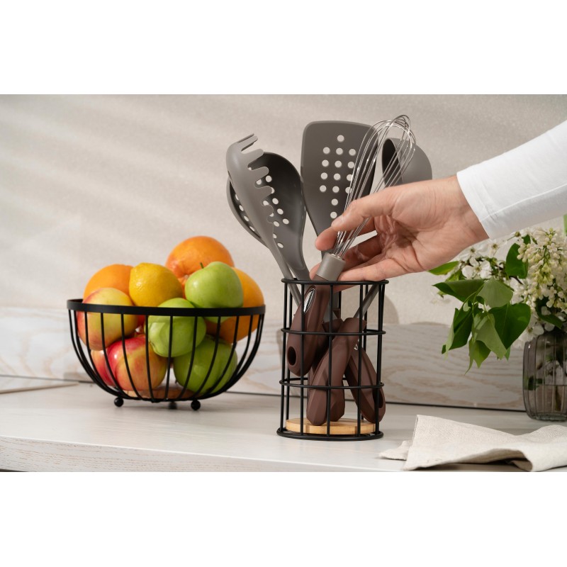 ARDESTO Підставка для столових приборів Midori 11х11х17см, метал, бамбук, чорна