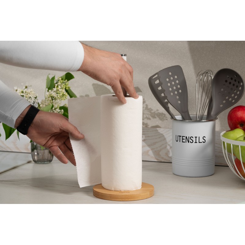 ARDESTO Тримач для паперових рушників Midori 15х34см, метал, бамбук, білий