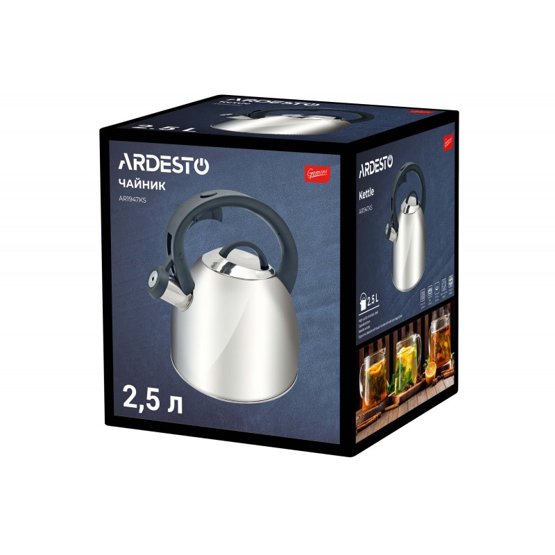 ARDESTO Чайник Gemini Cremona, 2.5 л, сірий, нержавіюча сталь