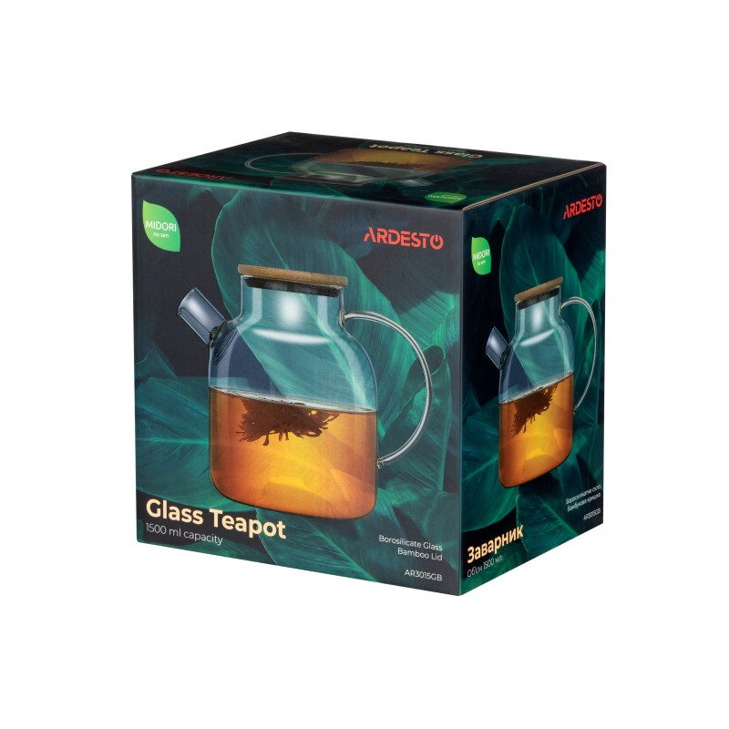 ARDESTO Заварник Midori, 1500мл, боросилікатне скло, бамбук, прозорий