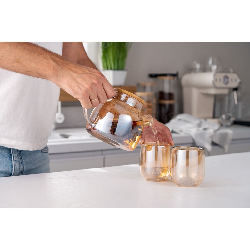 ARDESTO Заварник Golden Moon, 1000мл, боросилікатне скло, бамбук, золотистий