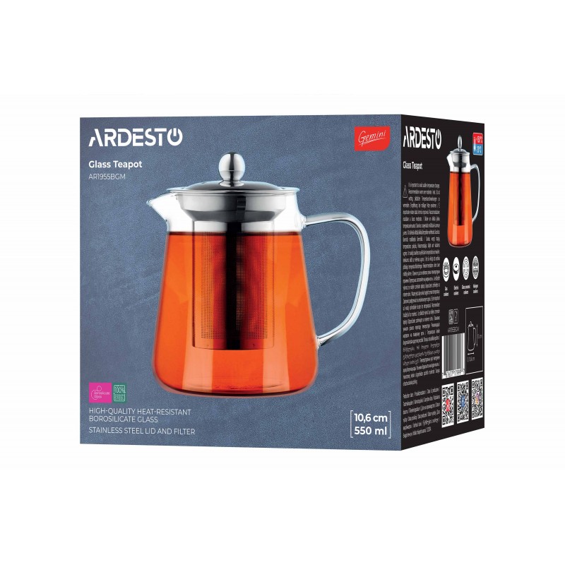 Заварник Ardesto Gemini Milano 550мл, боросилікатне скло, нержавіюча сталь, прозорий