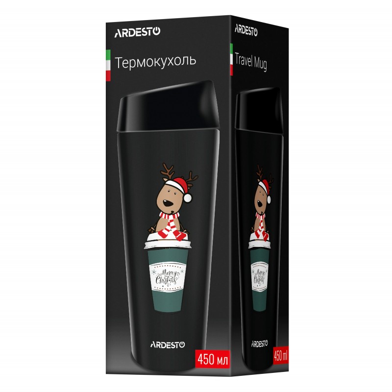ARDESTO Термокухоль Coffee Time Reindeer 450мл, нержавіюча сталь, чорний