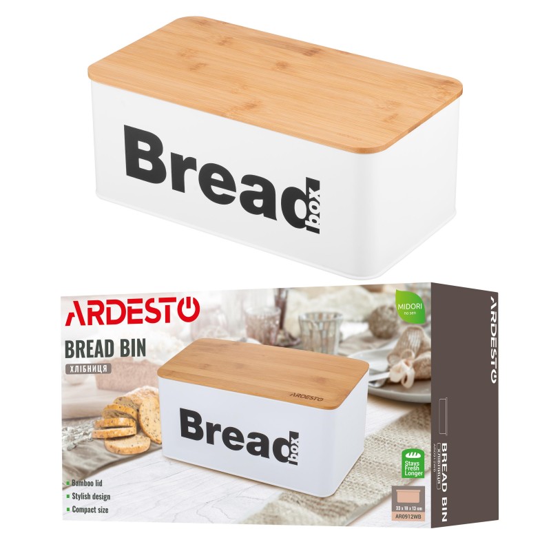ARDESTO Хлібниця Midori 33х18х13см, метал, бамбук, білий