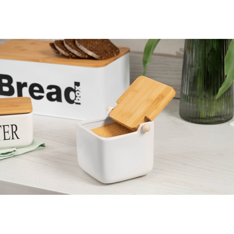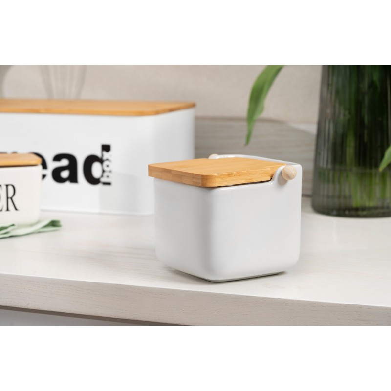 ARDESTO Цукорниця Midori 12х12х11см, 840мл, кераміка, бамбук, біла