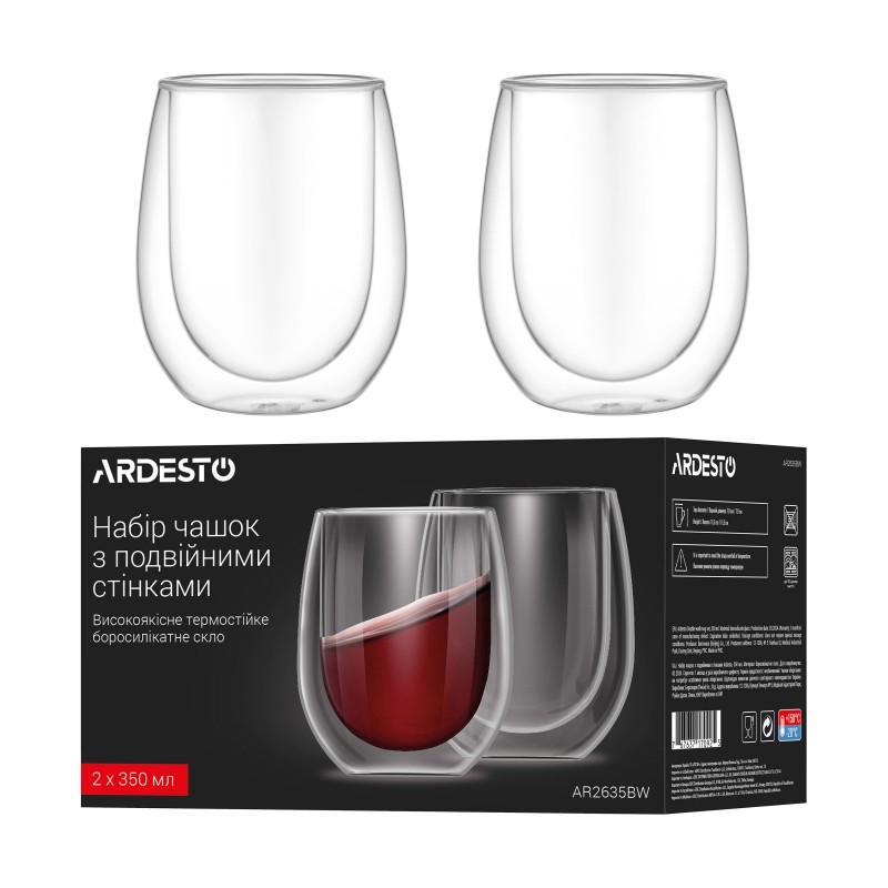 ARDESTO Набір чашок з подвійними стінками, 350мл, 2шт, боросилікатне скло, прозорий