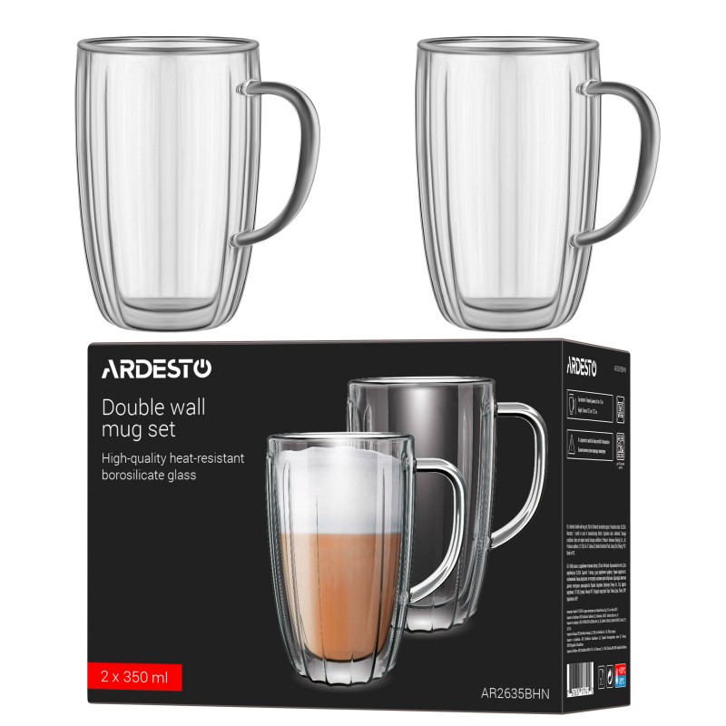 ARDESTO Набір чашок з ручками і подвійними стінками 350мл, 2шт, боросилікатне скло, прозорий