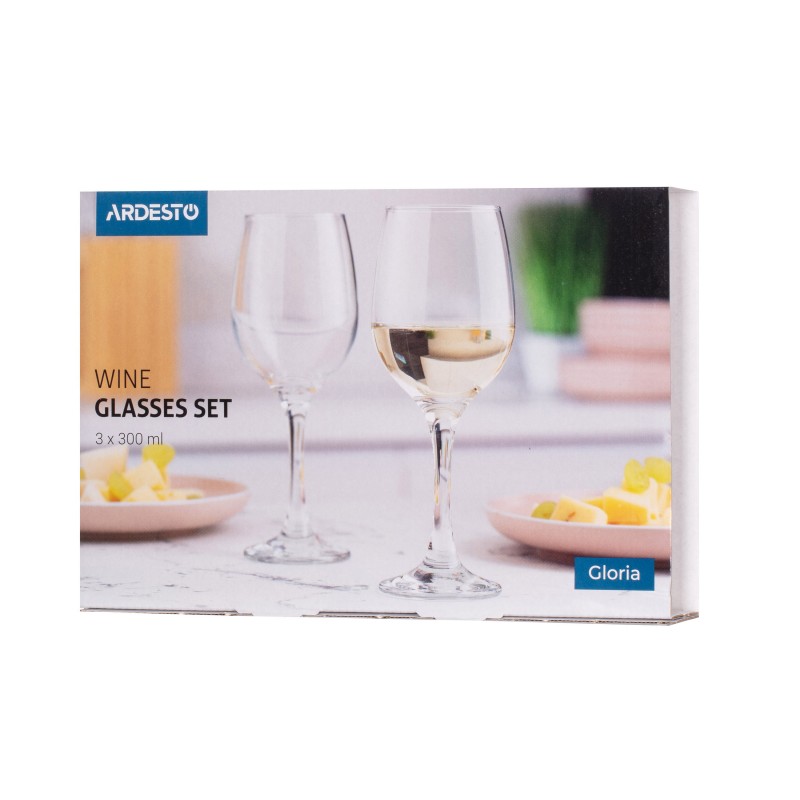 ARDESTO Набір келихів для вина Gloria, 300мл, 3шт, скло, прозорий