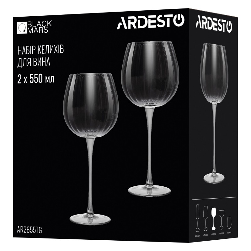 ARDESTO Набір келихів для вина Black Mars Orion 550мл, 2шт, скло, прозоро-сірий