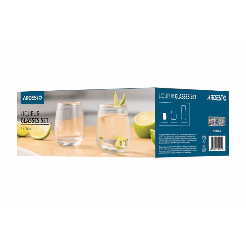 ARDESTO Набір стопок Gloria Shine, 95мл, 6шт, скло, прозорий