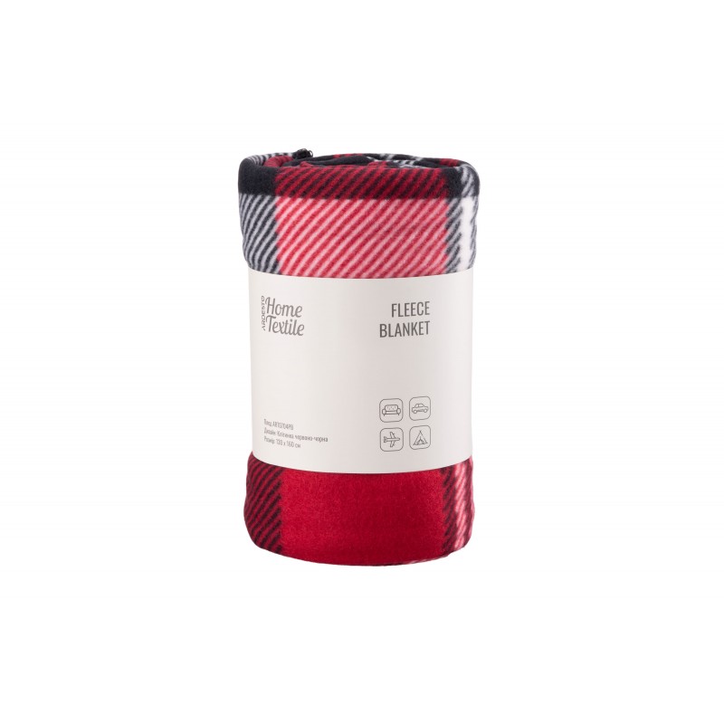 ARDESTO Плед Fleece, 130x160 см, 100% поліестер, клітинка червоно-чорна