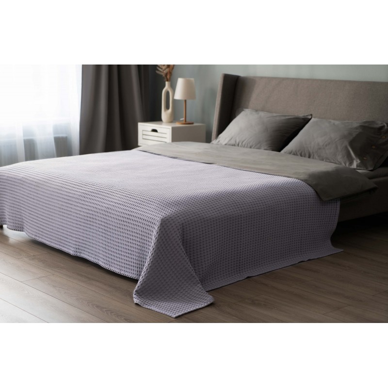 Плед Ardesto Pique 160х230см, 100% бавовна, сірий світлий