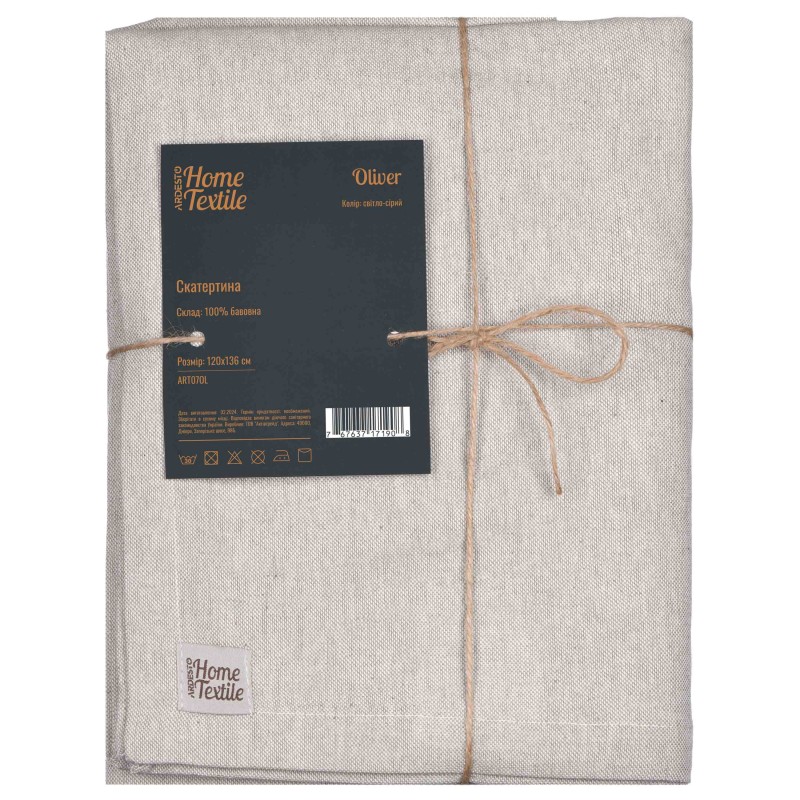 ARDESTO Скатертина Oliver, 120х136см, 100% бавовна, сірий світлий