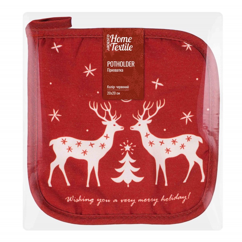 ARDESTO Прихватка Happy Holidays 20х20см, 90% поліестер, 10% бавовна, червоний