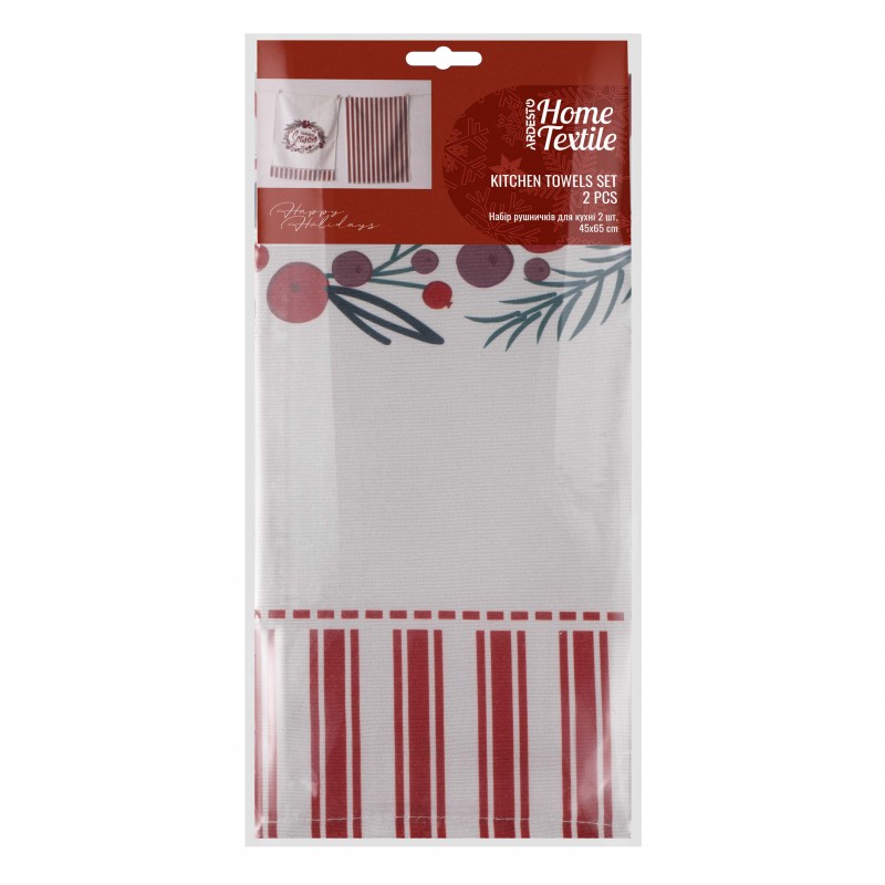 ARDESTO Набір рушничків для кухні Happy Holidays 45х65см, 2шт, 90% поліестер, 10% бавовна, червоно-білий