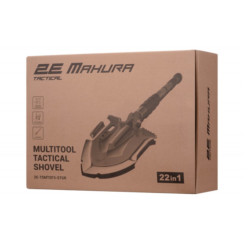 2E Mahura – універсальна й надміцна лопата-мультитул. У комплекті передбачено 23 інструменти чи не на всі випадки життя – активний відпочинок, туризм, полювання, автомобільні й не тільки пригоди на бездоріжжі тощо. Крім того, інструмент може стати гарним подарунком для військовослужбовця чи спецпризначенця.