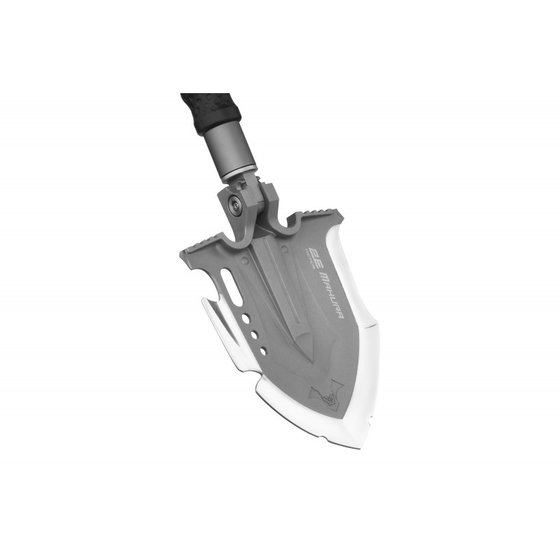 У складаній тактичній лопаті 2E Mahura застосовано унікальну технологію «швидкий замок», завдяки якій можна вибрати 7 рівнів нахилу в діапазоні від 0 до 150° відповідно до потреб користувача. Інструмент має лезо лопати та лезо сокири на поверхні лопати, отож його можна використовувати для рубання, різання, пиляння, копання або як молоток. Також з-поміж додаткового приладдя: ніж, гарпун, відкривачка для пляшок, сигнальний свисток, кресало (розпалювач вогню), дротяна пила, підставка під камеру, мотузка тощо.