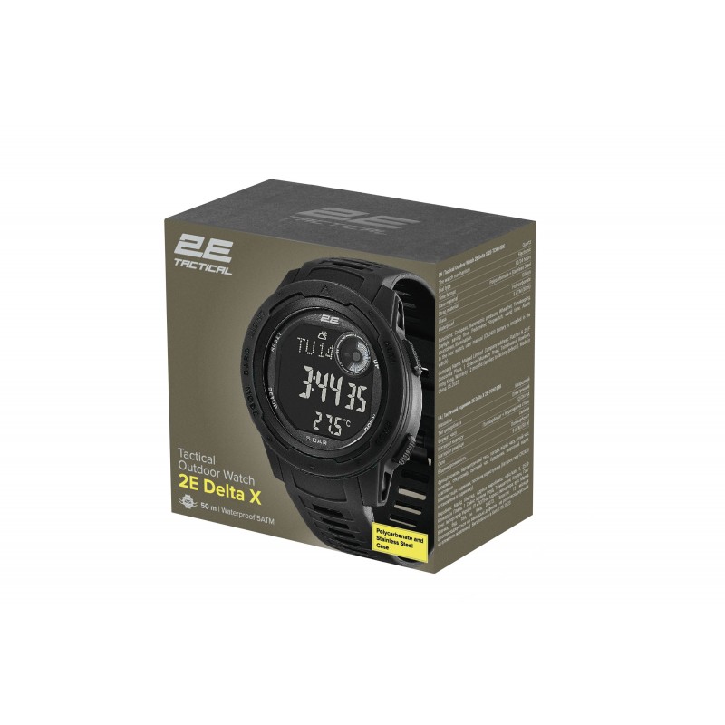 2E Tactical Тактичний годинник Delta X Black з компасом та крокоміром