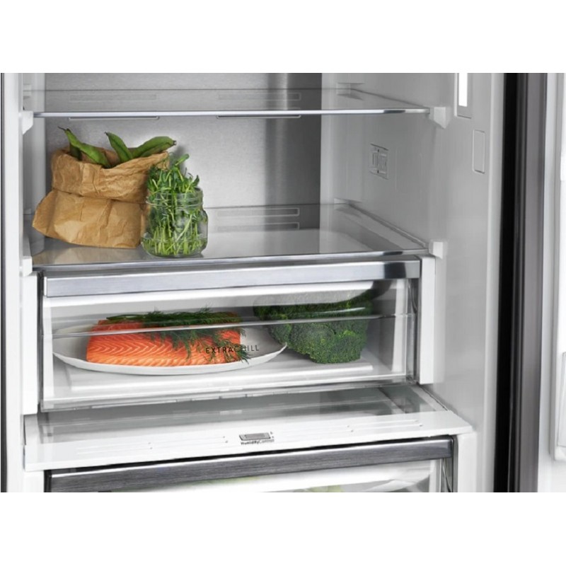 Збережіть якість, смак і свіжість м'ясного асорті та сирів в висувному ящику Extra Chill. В ящику підтримується більш низька температура, ніж в решті частини холодильника, завдяки активній циркуляції холодного повітря.