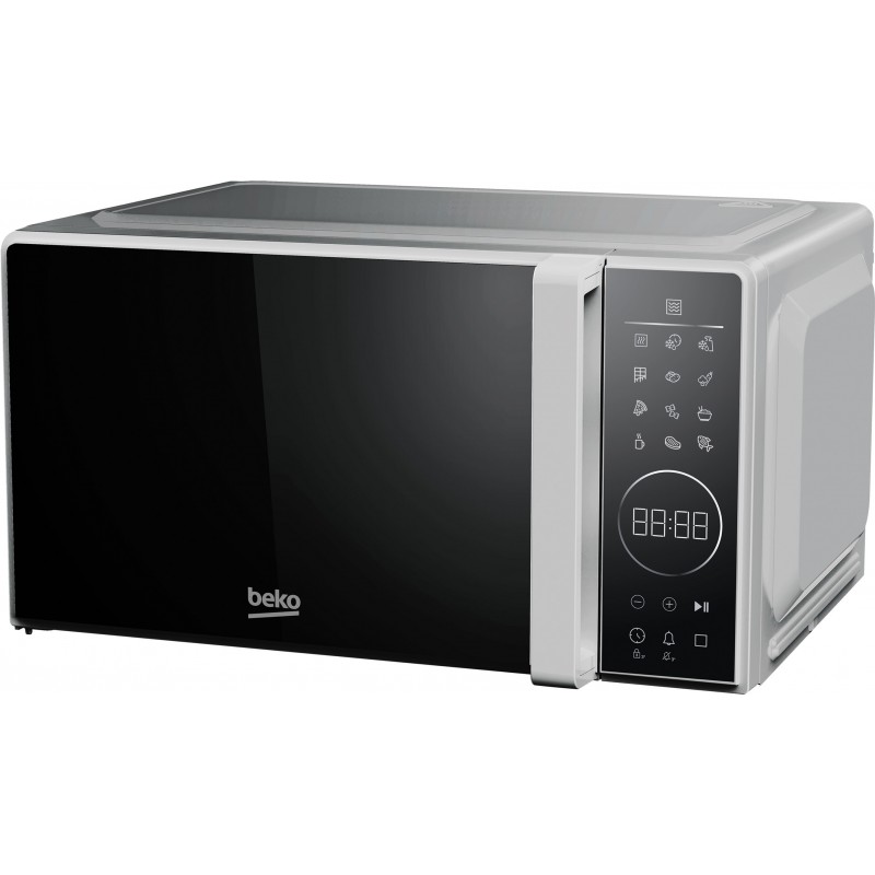 Мікрохвильова піч Beko MOC20130SFB поєднує в собі сучасний дизайн та передові функції для комфортного приготування їжі. З об'ємом 20 літрів та потужністю 700 Вт, вона забезпечує ефективне розігрівання та приготування страв.