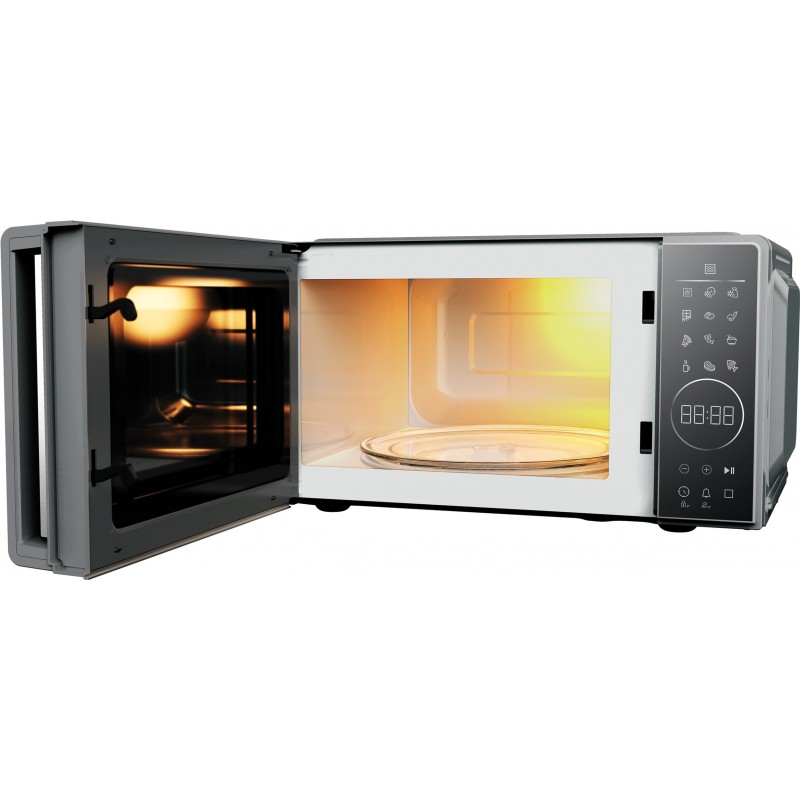 Цифрове сенсорне управління дозволяє легко обирати необхідні налаштування, а LED-дисплей забезпечує чітке відображення інформації. Мікрохвильова піч оснащена 6 рівнями потужності, що дозволяє адаптувати процес приготування до різних потреб.