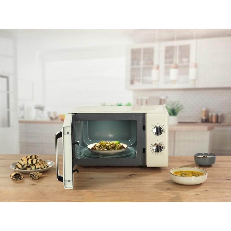 Мікрохвильова піч Gorenje MO20E1HRL вирізняється елегантним бежевим дизайном, який додає тепла та затишку вашій кухні. Компактні габарити (45,5 × 26,1 × 32,6 см) дозволяють зручно розмістити її навіть у невеликому просторі. Завдяки механічному керуванню з поворотними ручками, користування приладом є інтуїтивно зрозумілим та зручним.