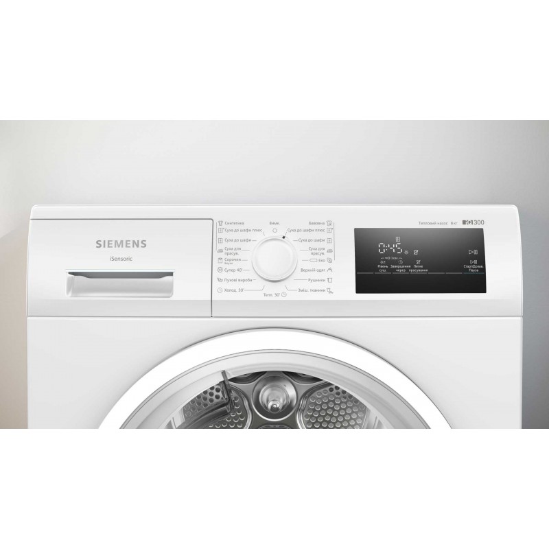 Siemens Сушильна машина тепловий насос, 8кг, A++, 60см, дисплей, білий