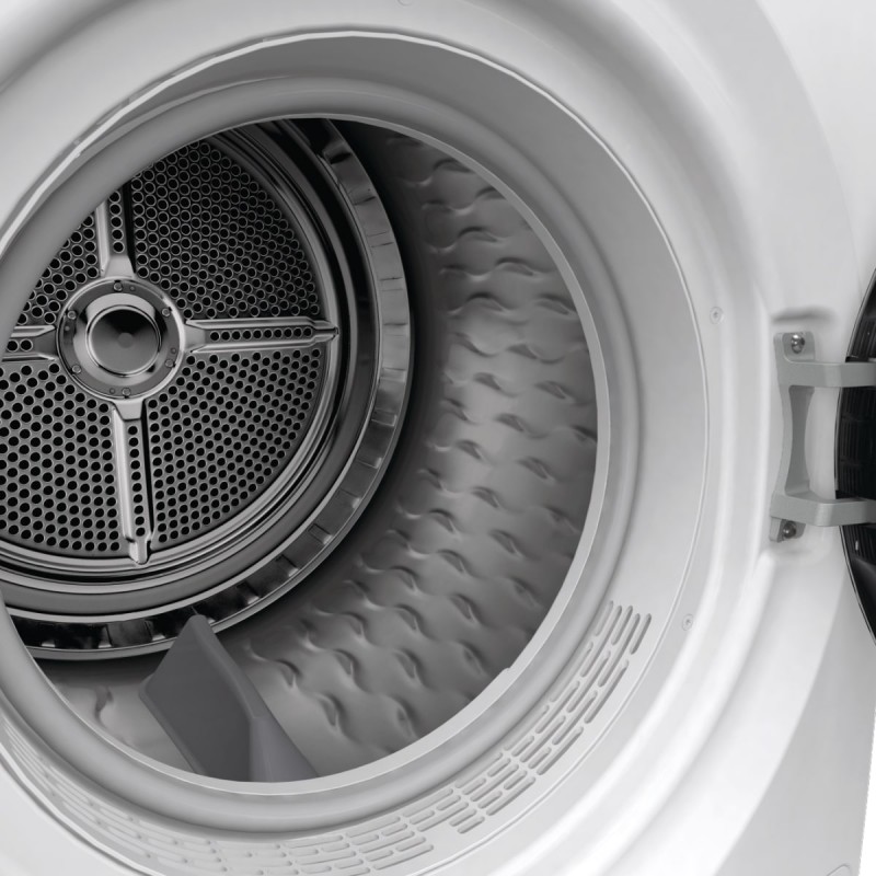 Унікальний барабан хвилеподібної форми пом’якшує волокна тканин для якомога дбайливішої обробки всіх видів білизни. Внаслідок цього речі ретельно висушуються майже без зминання.