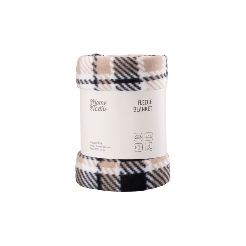 ARDESTO Плед Fleece, 130x160 см, 100% поліестер, клітинка коричнева