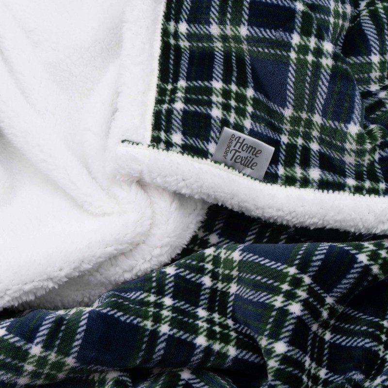 ARDESTO Плед Sherpa 160х200см, 100% поліестер, клітинка, зелений