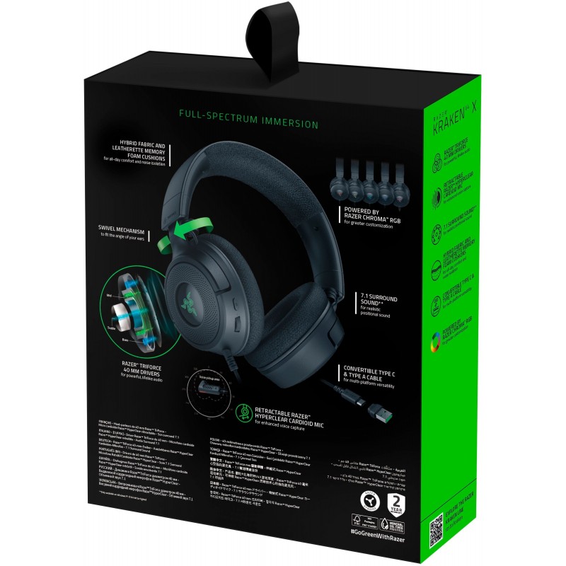 Гарнітура ігрова Razer Kraken V4 X, 7.1, USB-A, 1.8м, RGB, чорний
