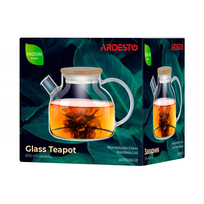 ARDESTO Заварник Midori, 600мл, боросилікатне скло, бамбук, прозорий