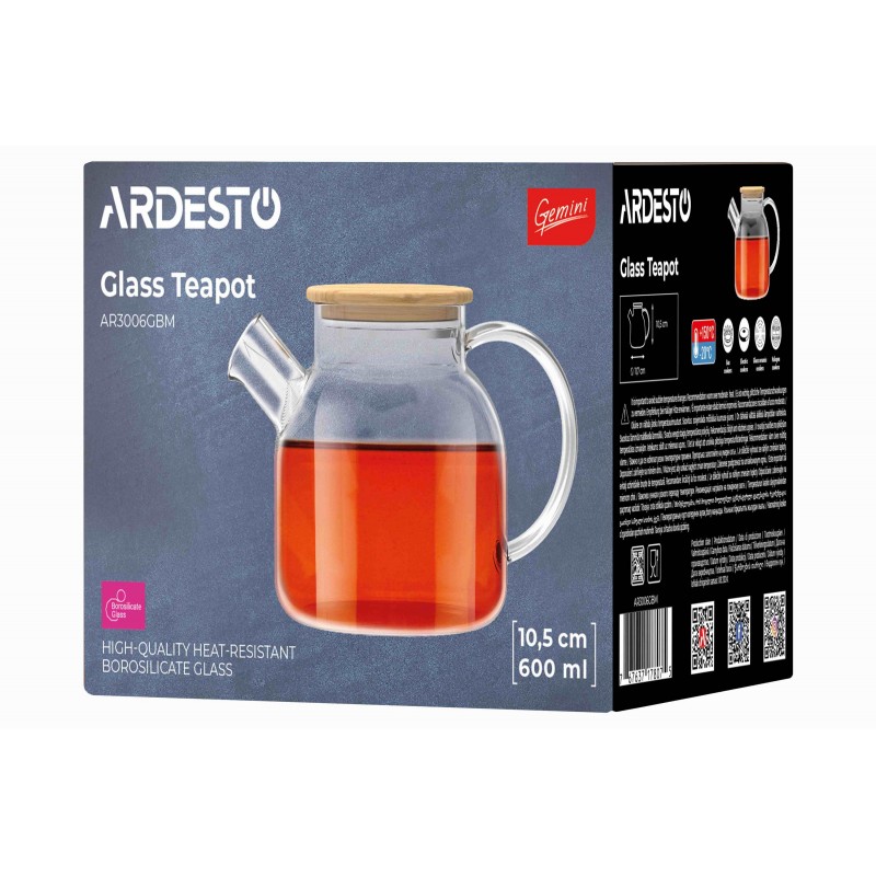 Заварник Ardesto Gemini 600мл, боросилікатне скло, бамбук, прозорий