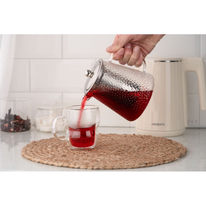 Заварник Ardesto Gemini 950мл, боросилікатне скло, нержавіюча сталь, прозорий