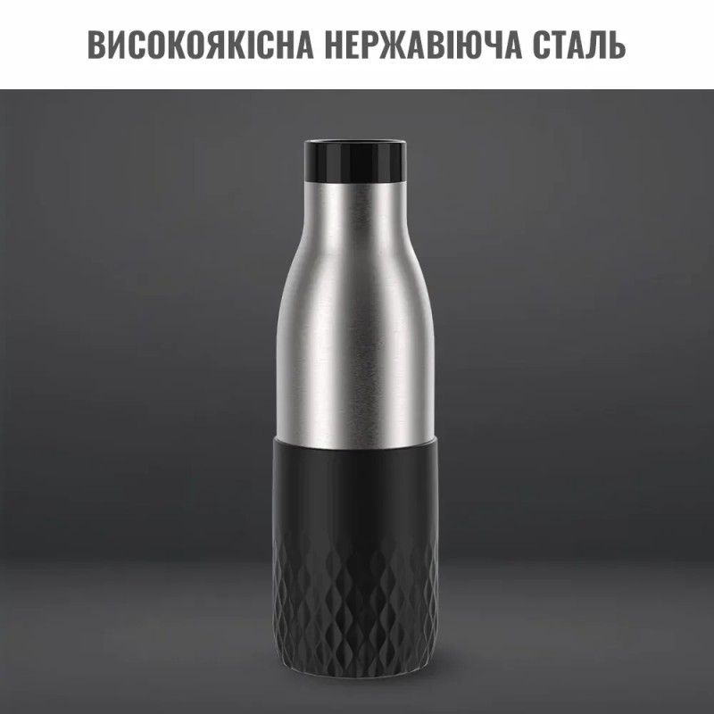 Корпус із нержавіючої сталі ідеально підходить для будь-яких напоїв, зберігаючи гарячі напої теплими до 12 годин, а холодні – прохолодним до 24 годин.