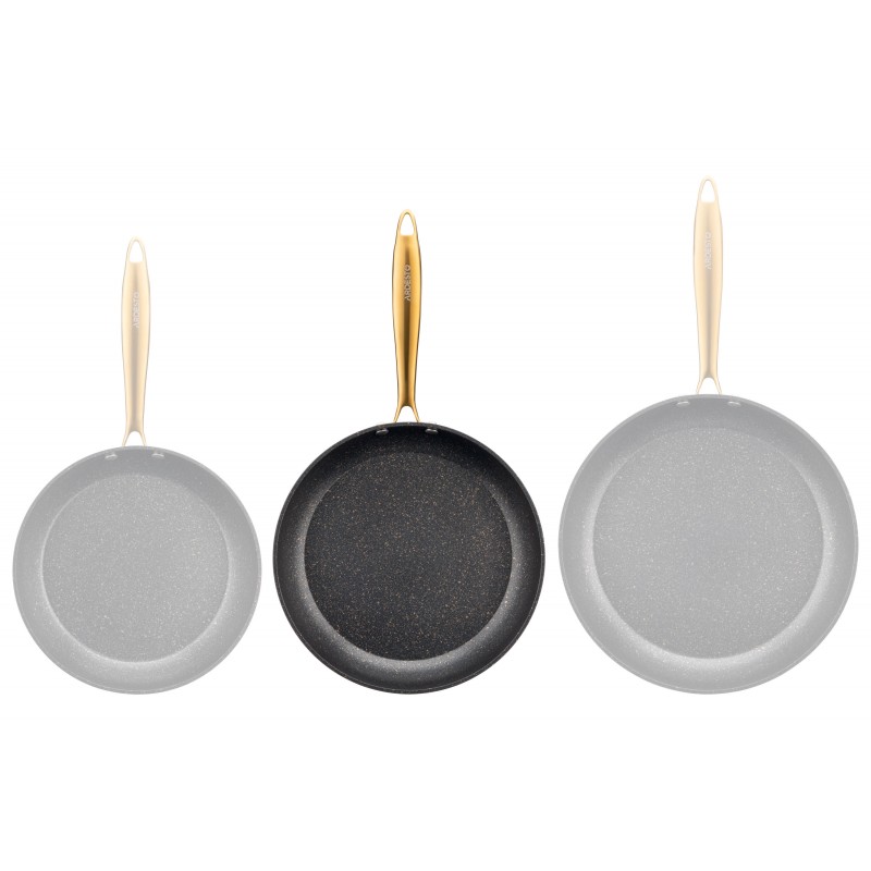 Особливістю виробу є ергономічне руків’я золотистого кольору з нержавіючої сталі – запорука комфортного й надійного хвату. ARDESTO Black Mars сумісна з різними видами плит, зокрема газовими, електричними, склокерамічними, галогенними та індукційними. Допустиме миття в посудомийній машині. У комплекті міститься протектор для зберігання з фетру, який згодиться як підставка під гаряче.