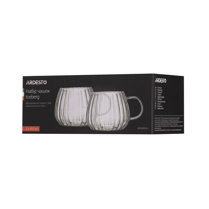 ARDESTO Набір чашок Iceberg, 400мл, 2шт, боросилікатне скло, прозорий