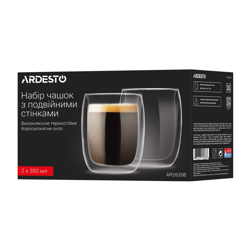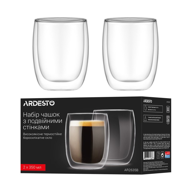 ARDESTO Набір чашок з подвійними стінками, 350мл, 2шт, боросилікатне скло, прозорий