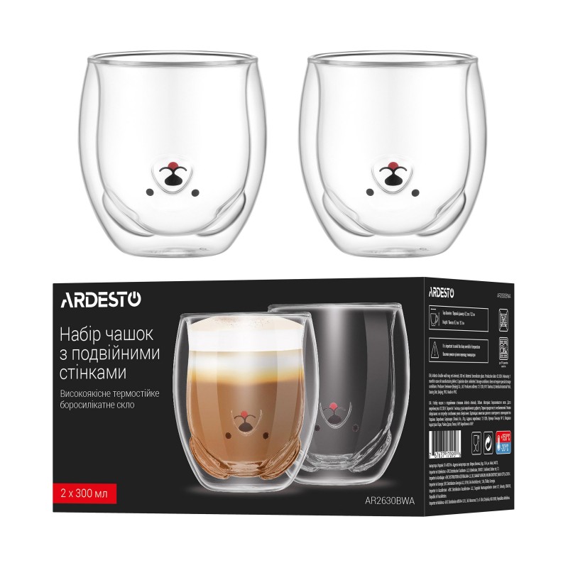 ARDESTO Набір чашок з подвійними стінками Animals, 300мл, 2шт, боросилікатне скло, прозорий