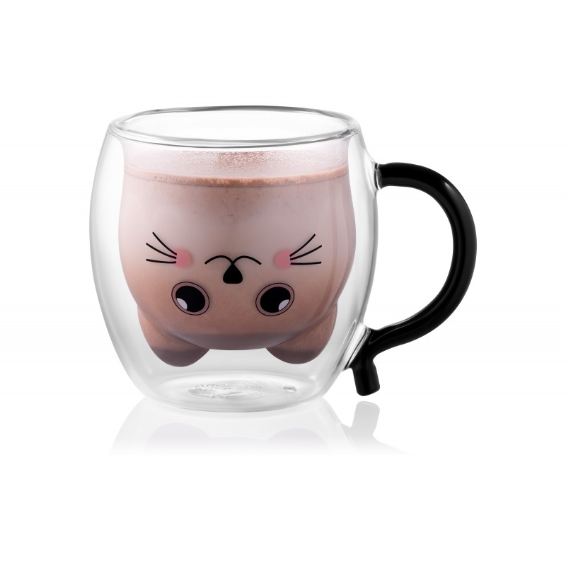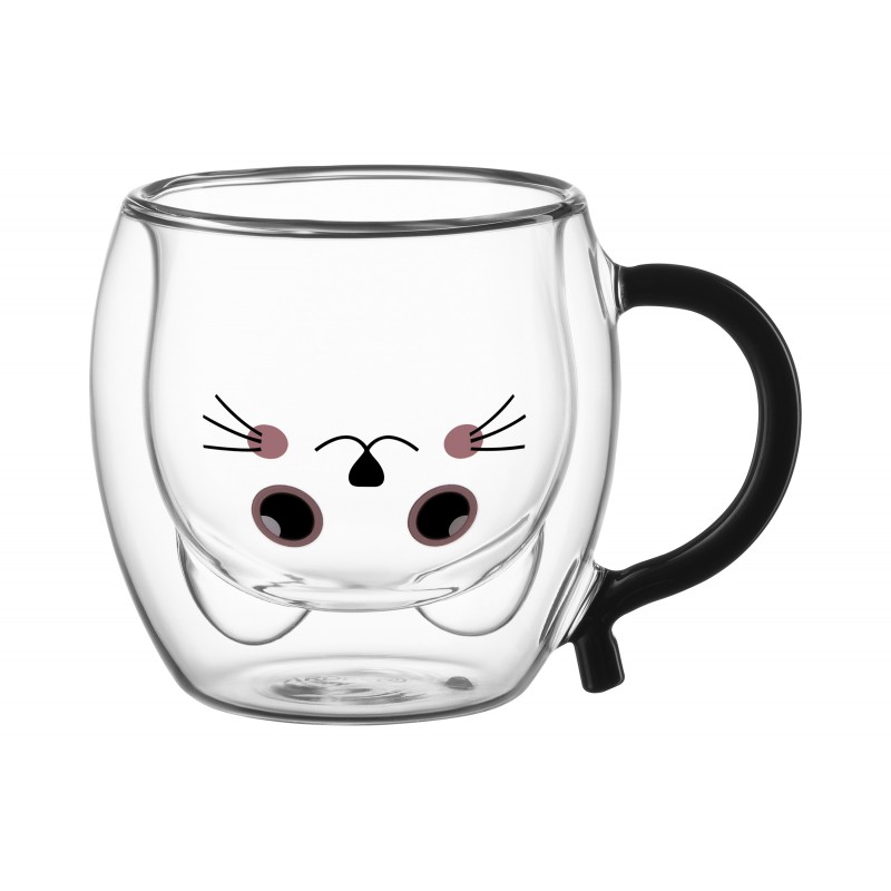ARDESTO Набір чашок з ручками Animals з подвійними стінками, 250 мл, 2 од., боросилікатне скло